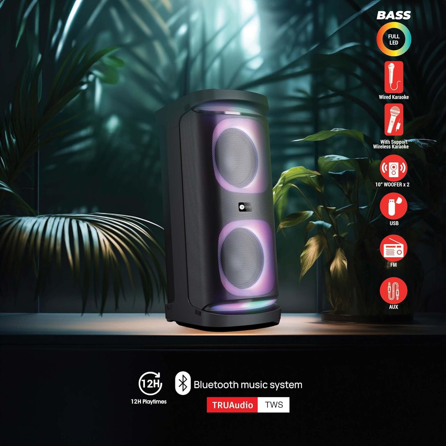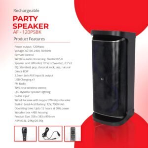 • ✅Powerful 120W Output: The AFRA Party Speaker delivers an impressive 120 watts of sound, making it ideal for any party or event. Its powerful output ensures deep bass and clear highs, providing an immersive audio experience for music, announcements, or karaoke sessions.