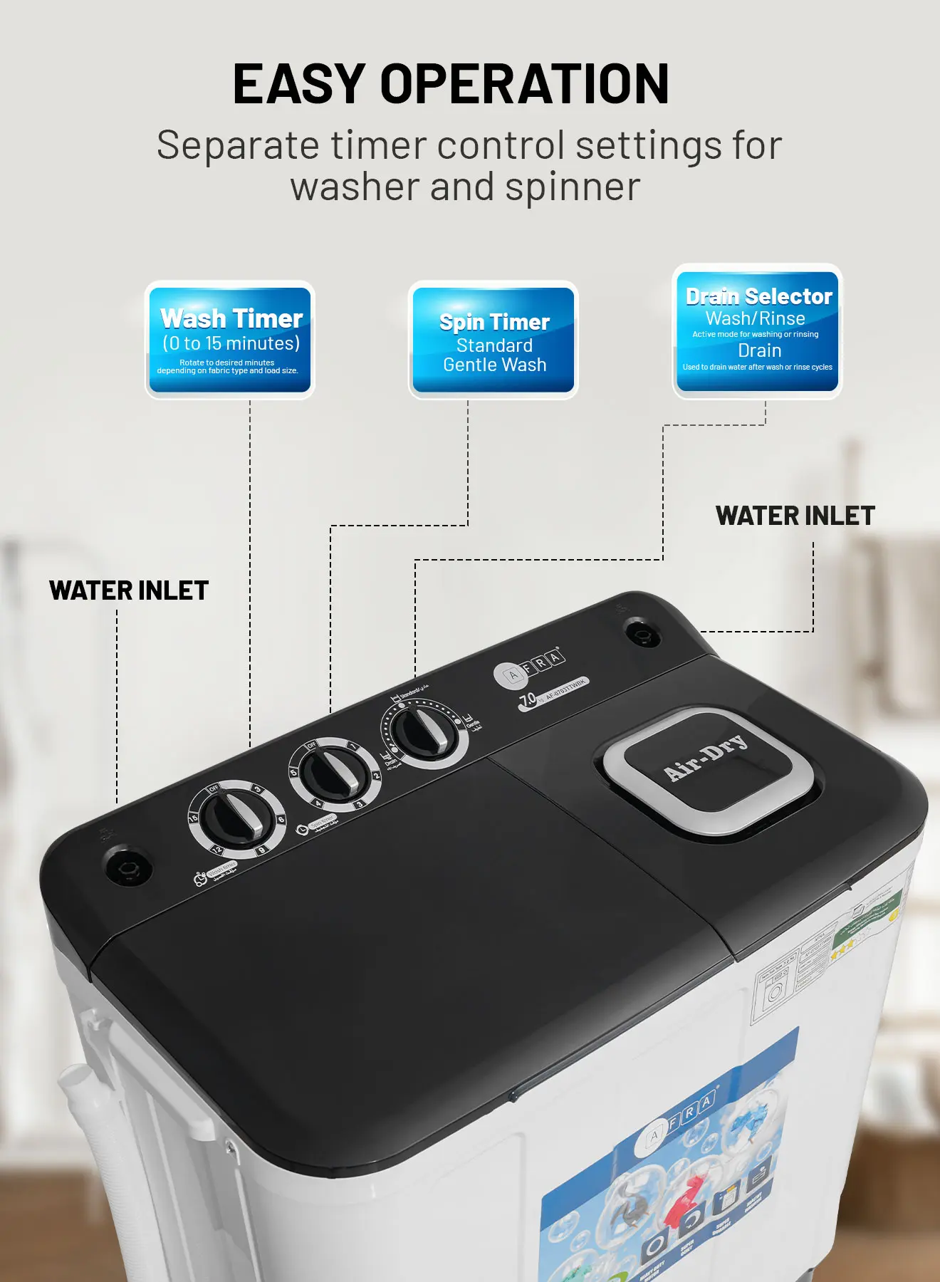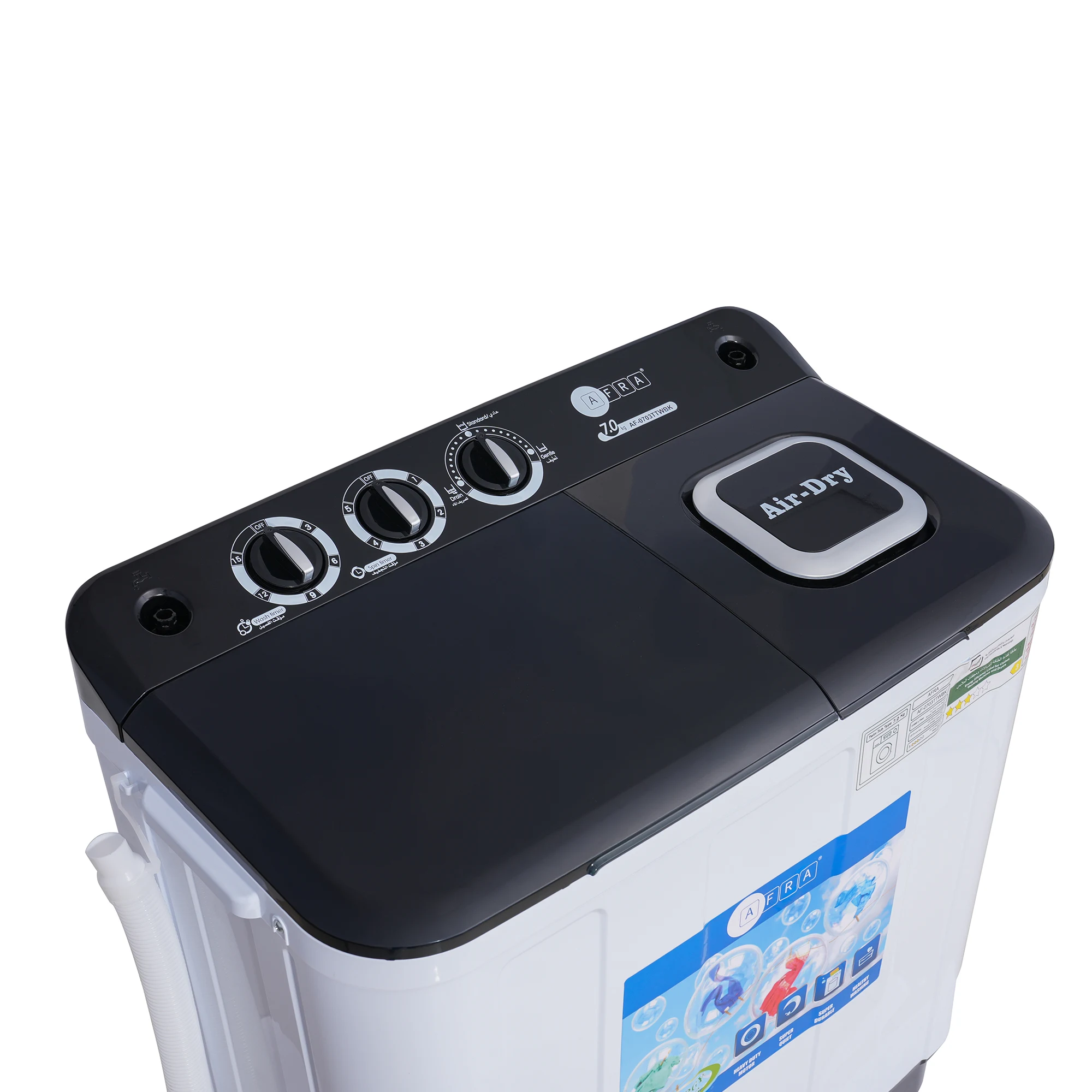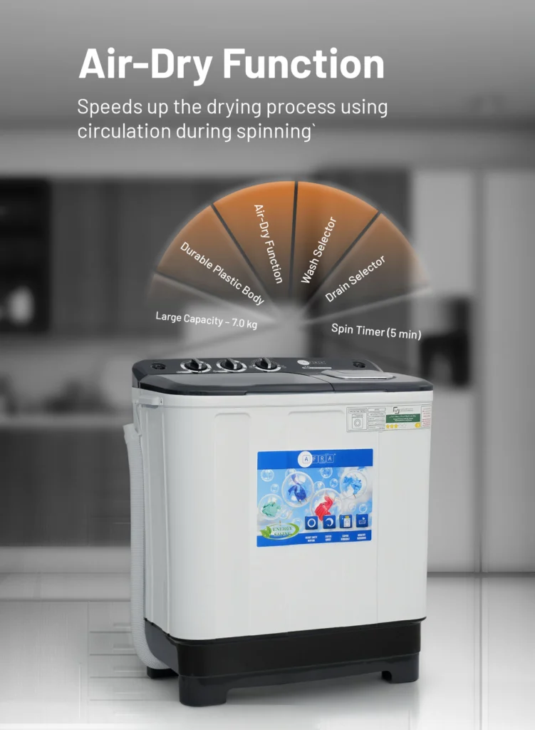 Afra Top Load Semi Automatic Washing Machine 7 kg – AF-0703TTWBK
