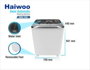 Be the first to review “Haiwoo 7Kg Semi-Automatic Twin Tub Washing Machine with Quick Wash & Auto Balance Control, Silent Operation, Powerful Pulsator, Spin Easily with One Twist – HWM-750X”