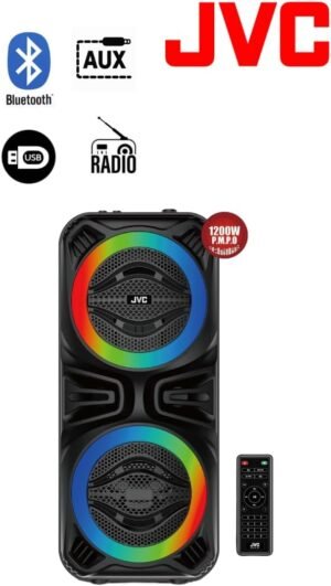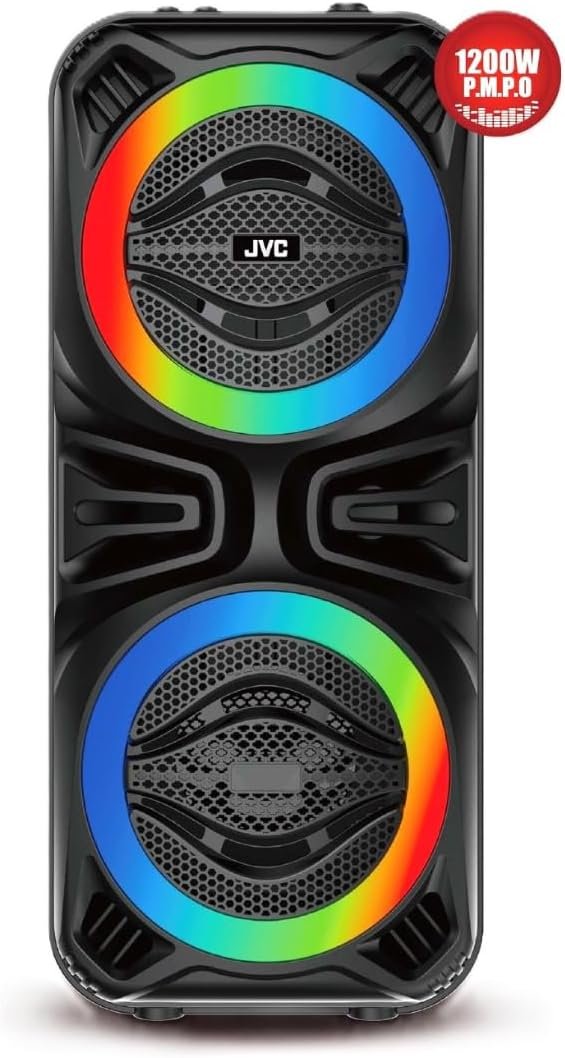 JVC Portable Bluetooth Party Speaker 1200Watts PMPO Powerfull Output Sound sensitive LED lights with Microphone – XS-N2124PB