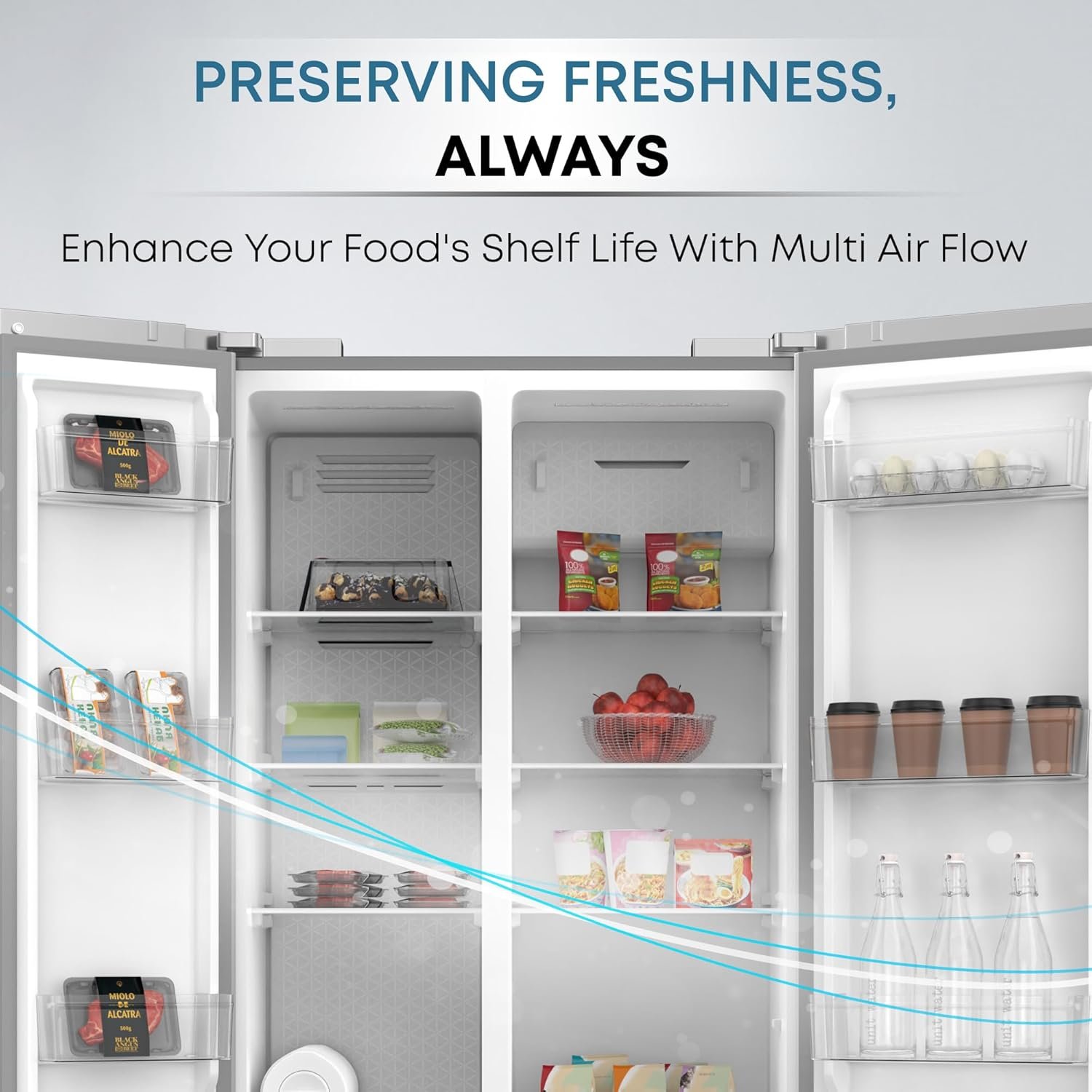 - 【Effective Cooling】 This refrigerator maintains an ideal temperature, keeping your food fresher for longer. It is outfitted with a Multi Air Flow System and a cutting-edge No-Frost cooling system. Use this amazing and hassle-free cooling technology to avoid manual defrosting.