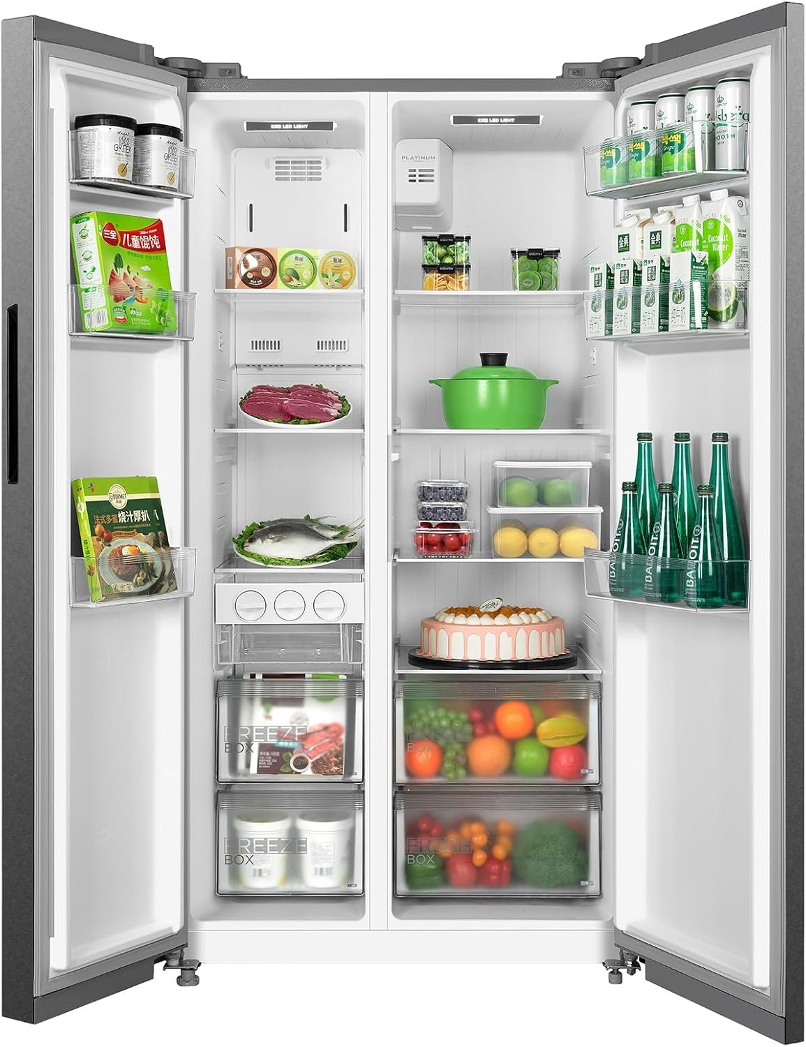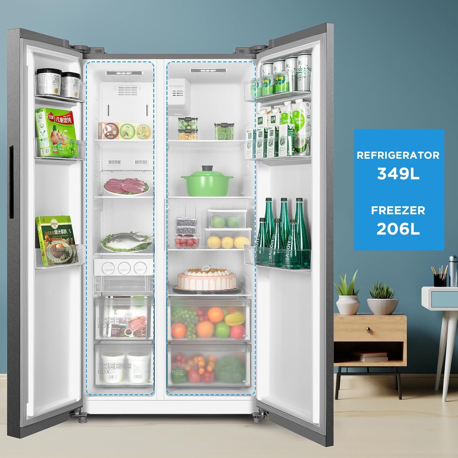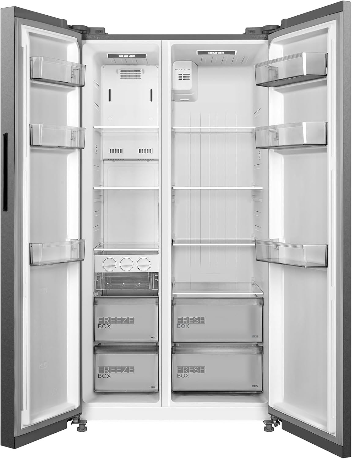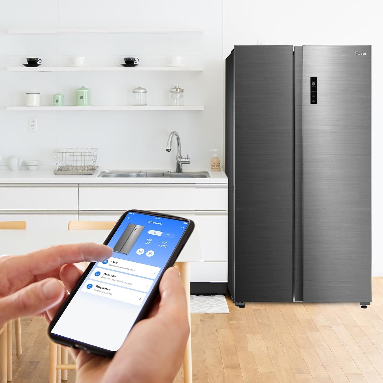 Midea 710Litre Gross & 510Litre Net Side By Side 2 Door Refrigerator, Frost Free Fridge Freezer With Humidity Control, Electronic Touch Screen, Inverter Quattro, Adjustable Door Racks, Silver – MDRS710FIE46AED