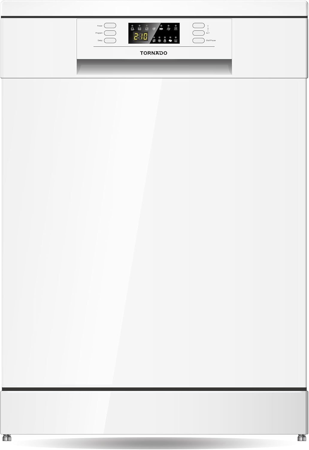 Tornado Freestanding Dishwasher 13 Place Settings, 6 Programs, 2 Racks, A++ Energy Rating, Quiet Operation Low Noise, Mini programme, Half-load,Stainless Steel Tub, TDG-JN1363-BSU Silver